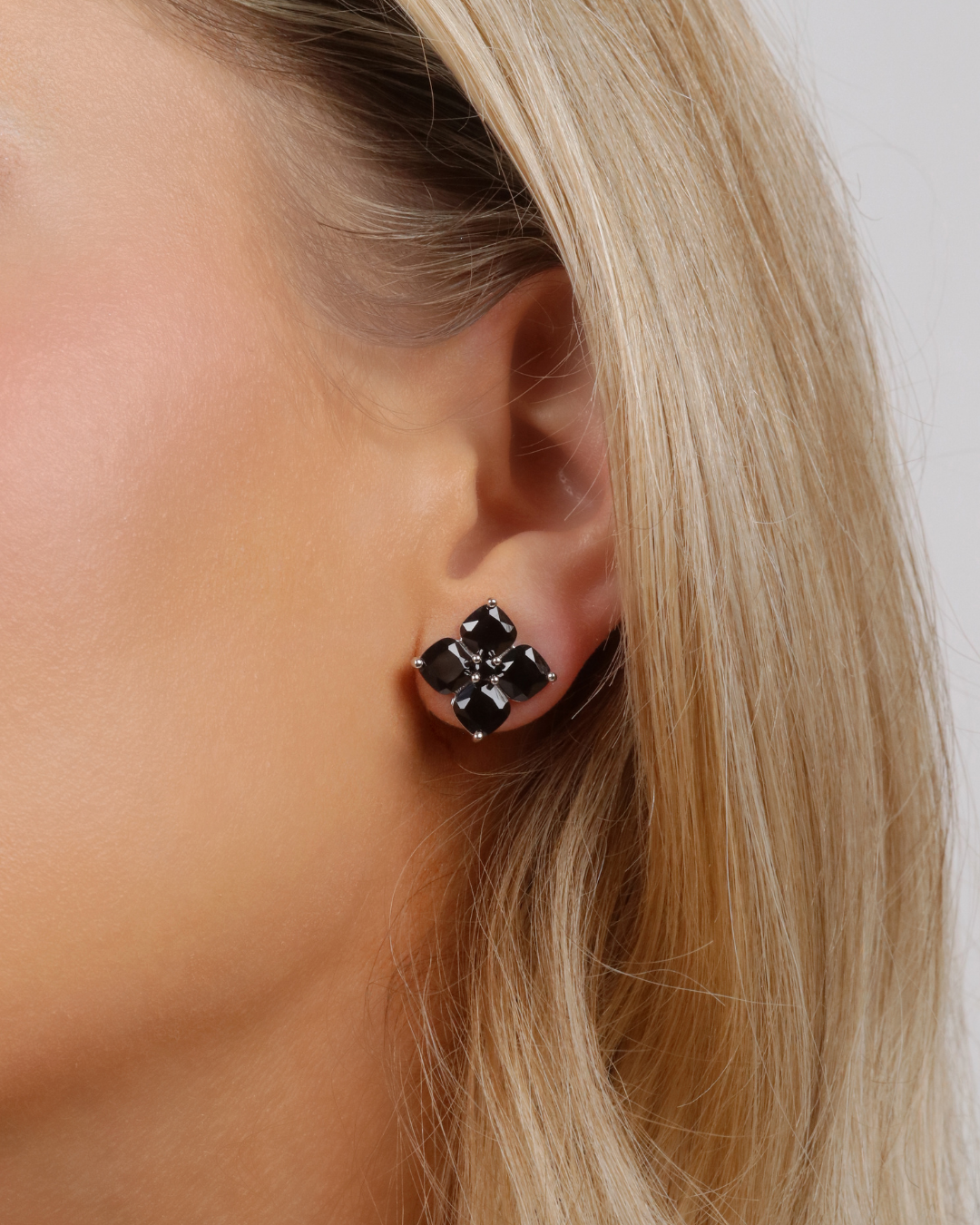 White Gold Plated SilverMini Crystal Hydrangea Stud Earrings - Espresso