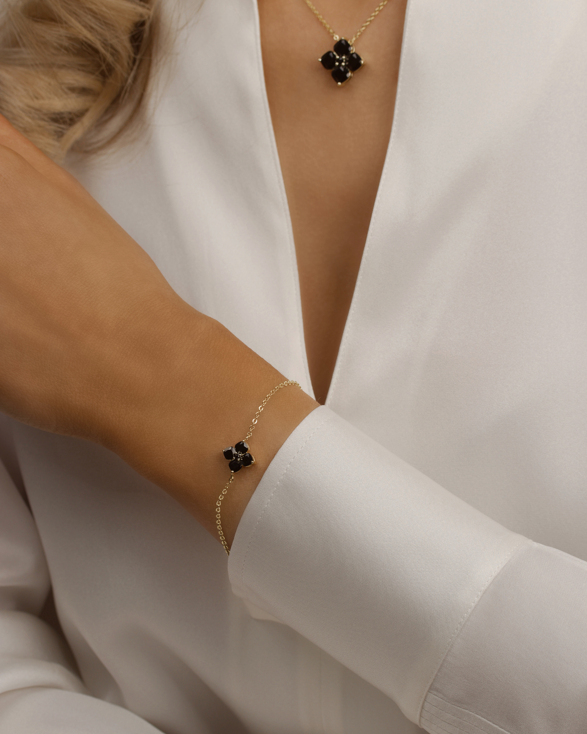 Gold PlatedMini Crystal Hydrangea Bracelet - Espresso