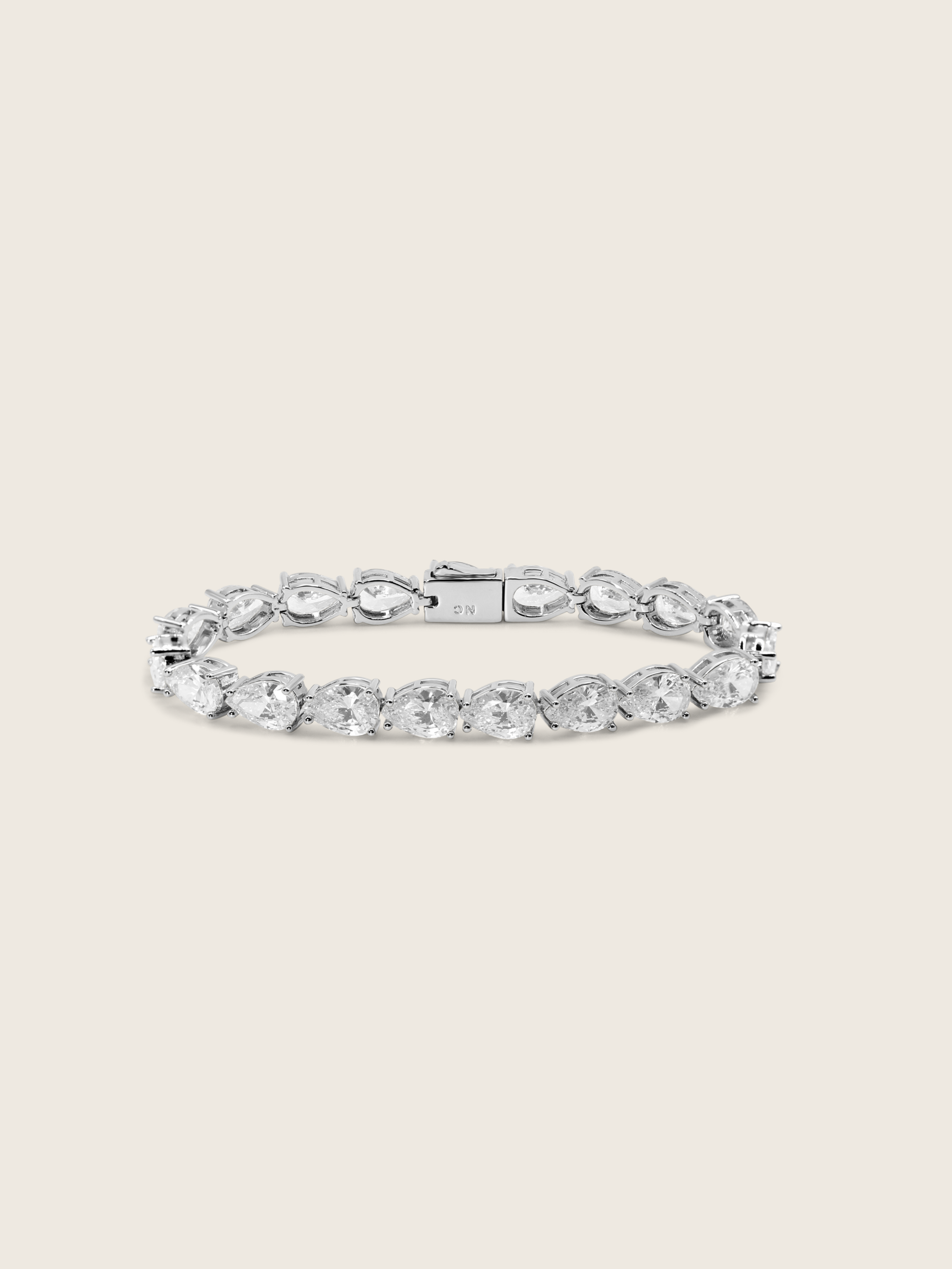By popular demand, the Aurora Bracelet has arrived, completing one of our most loved collections. Crafted in brass with premium White Gold plating, this bracelet features a line of pear cut crystals that shimmer beautifully with every movement.