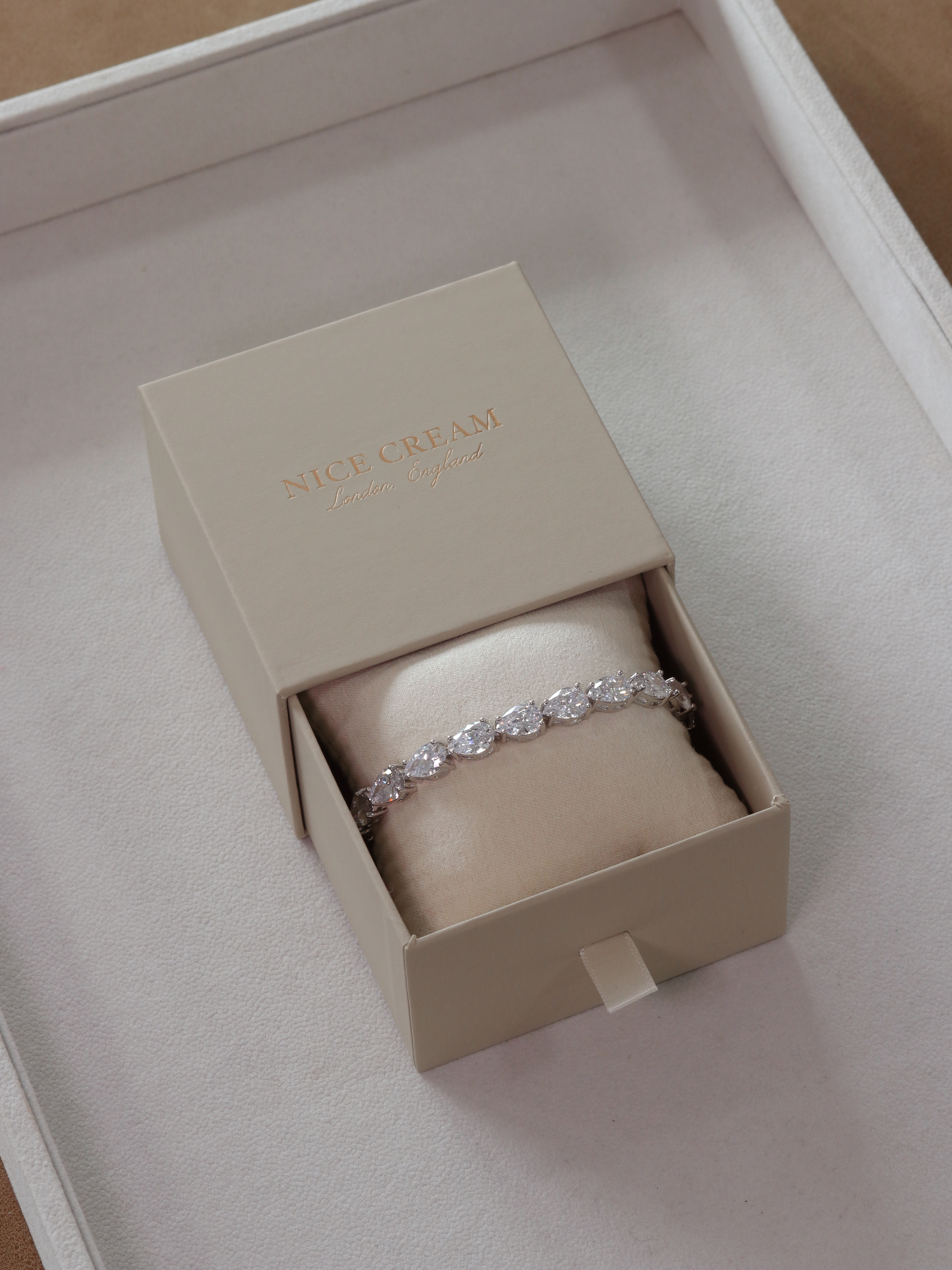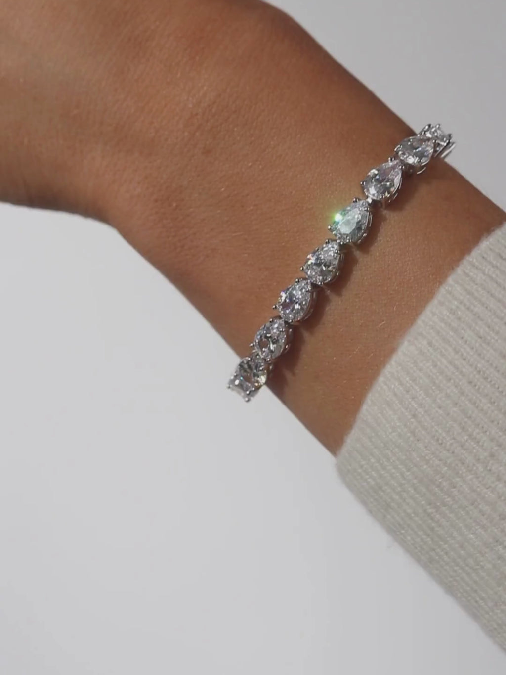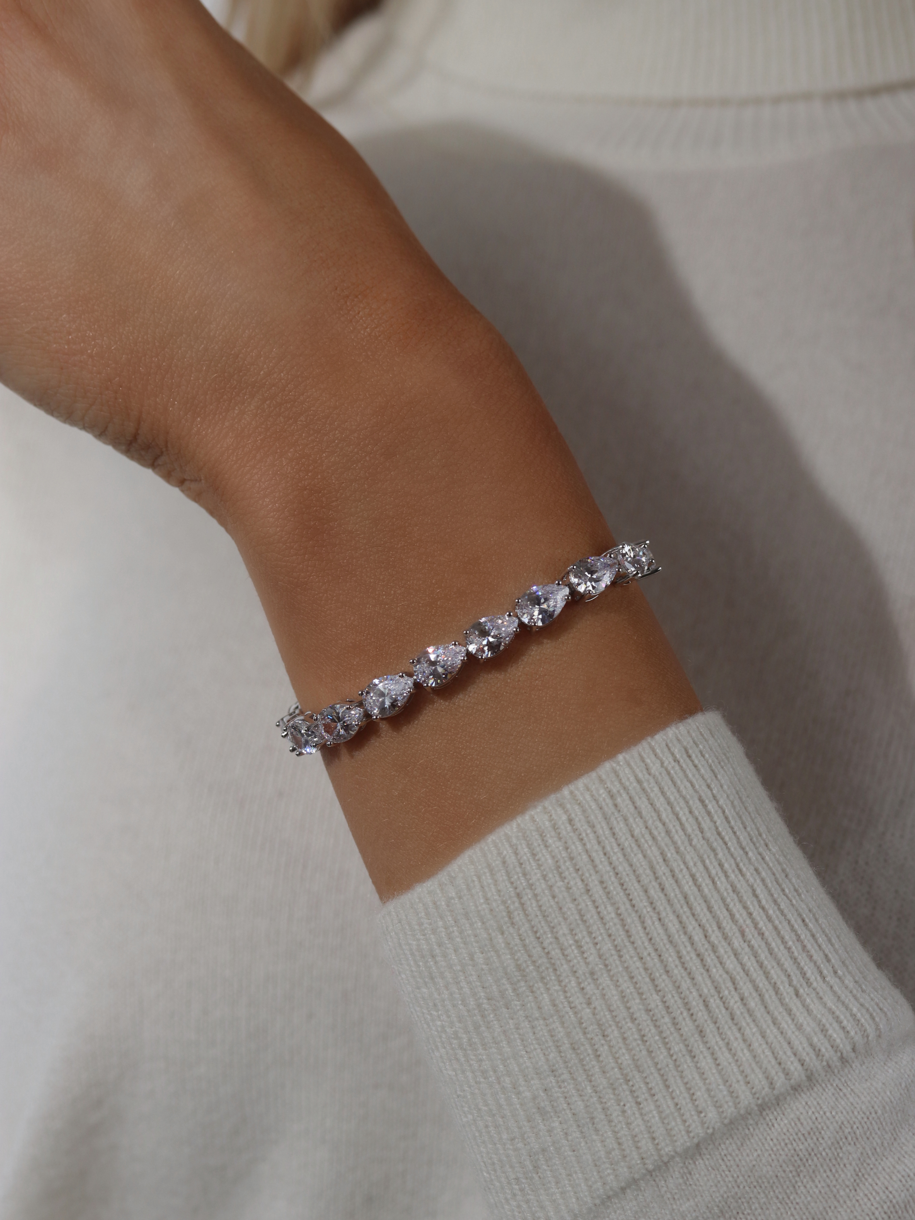 • Aurora Bracelet - premium White Gold plating over brass, with a flowing line of pear cut stones